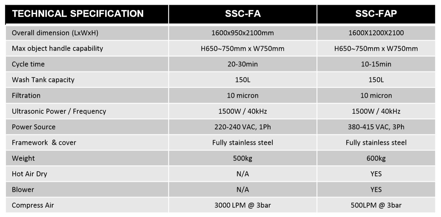 The SSC-FA will be loaded from the front by open swing door. STENCIL / MIS-PRINT PCBA to be clean directly positioned into Flexi-adj spring holder cater size from 650-750mm, after loading and front door closed, then activate the process cycle START. The fully automatic 2-STEP process via auto liter for ultrasonic cleaning and reciprocating hot air blow-dry.