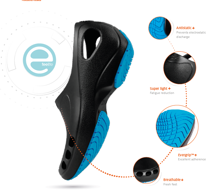 EVERLITE, is an occupational shoe made entirely of polymeric materials and with the following components: