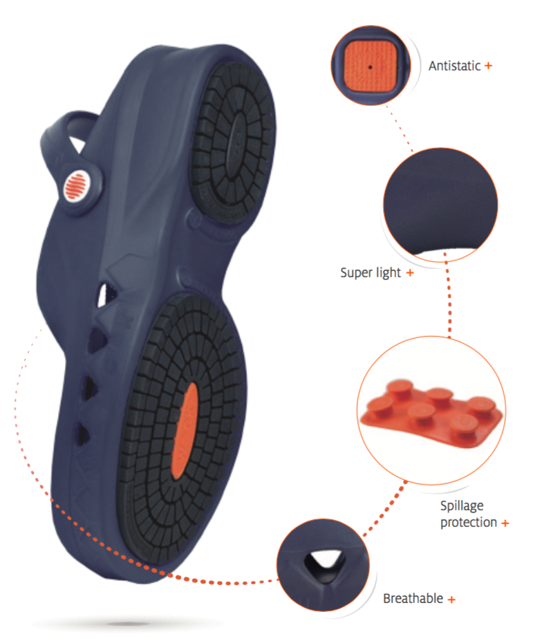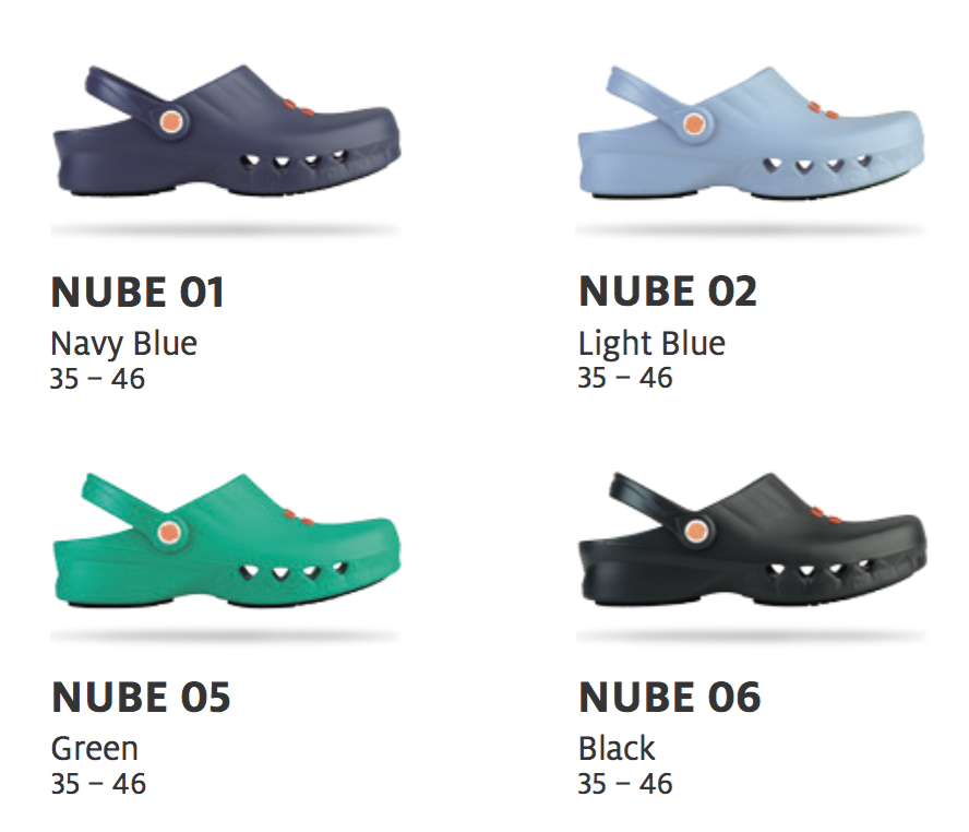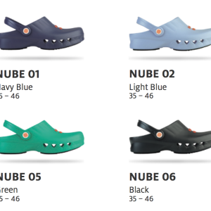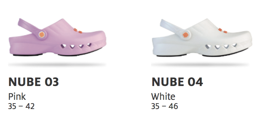 NUBE, this occupational clog is entirely made of polymeric materials and has the following components: